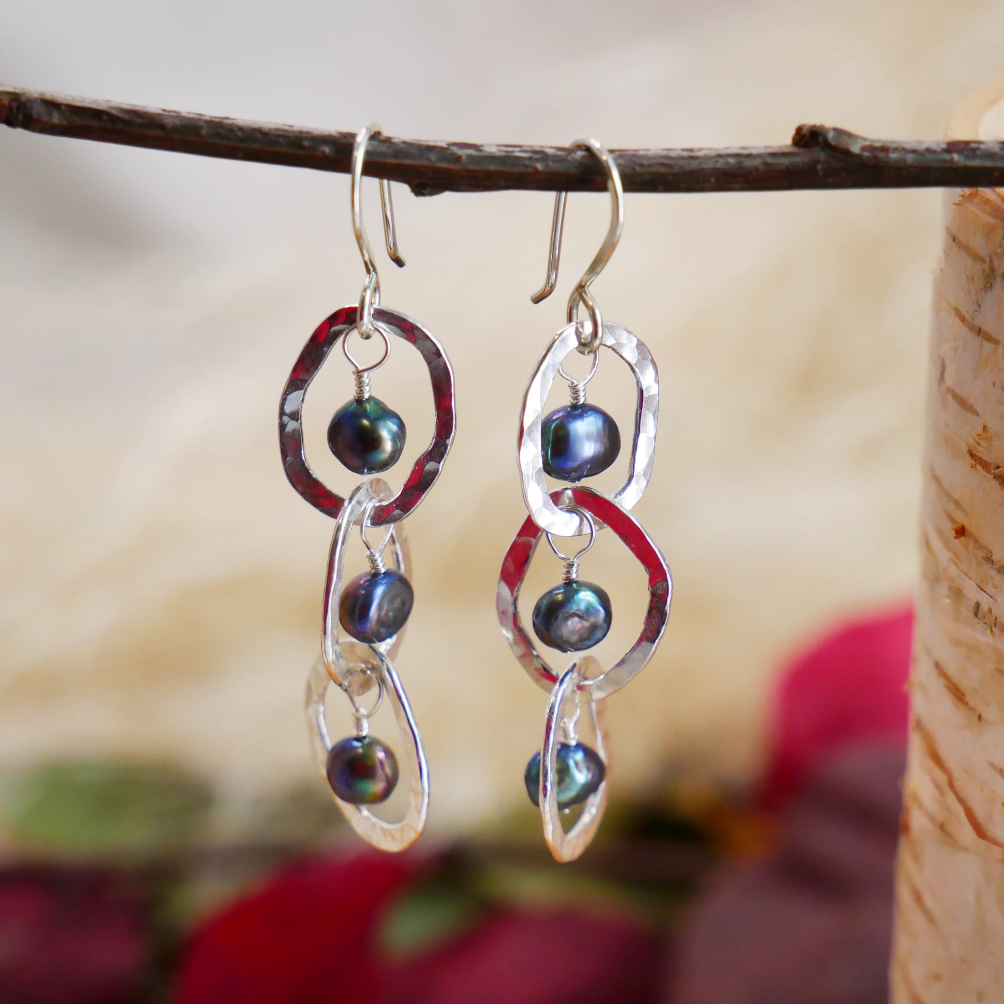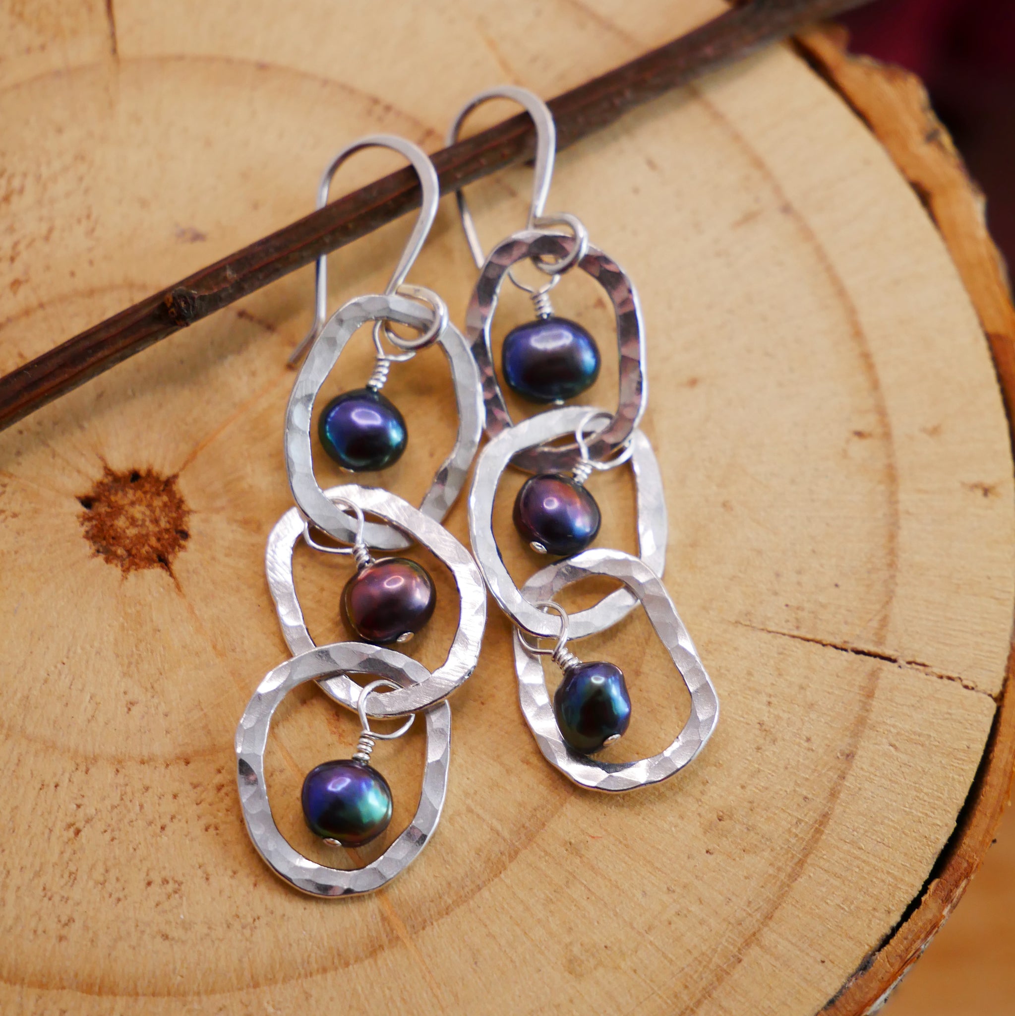 Freshwater Pearl Interlocking Hammered Hoop Earrings